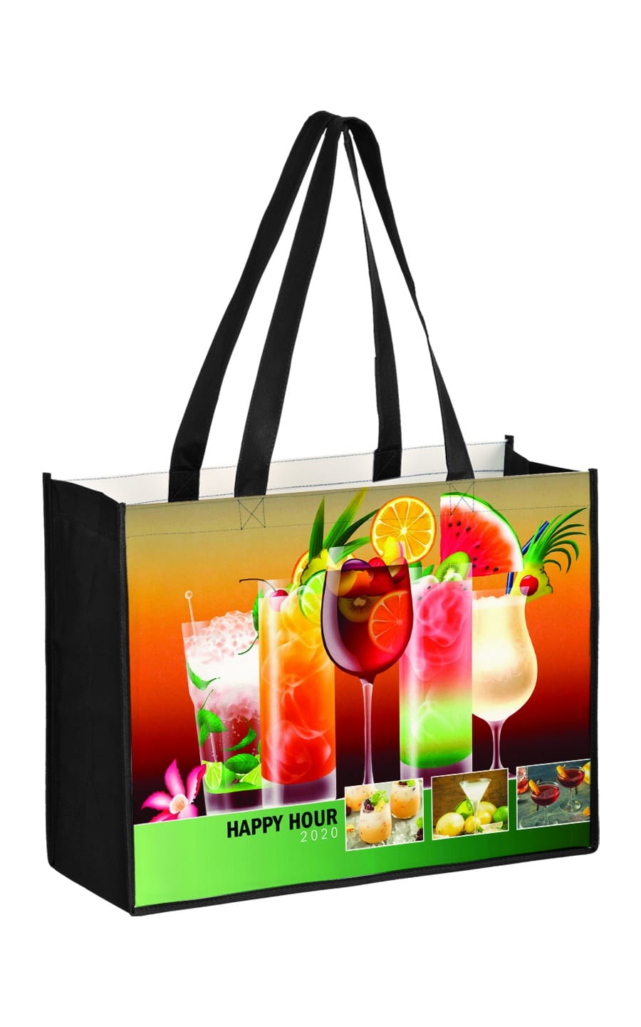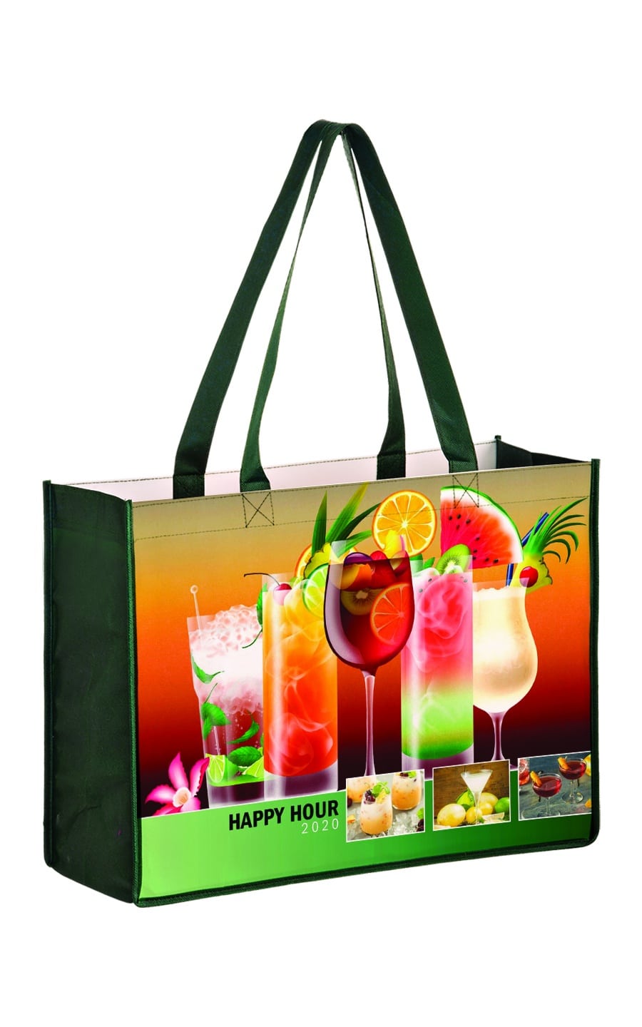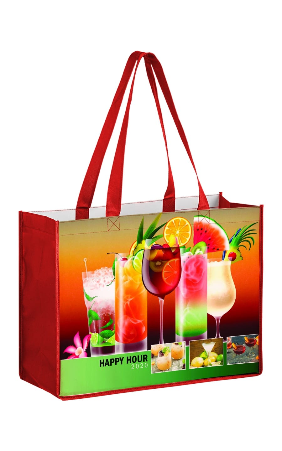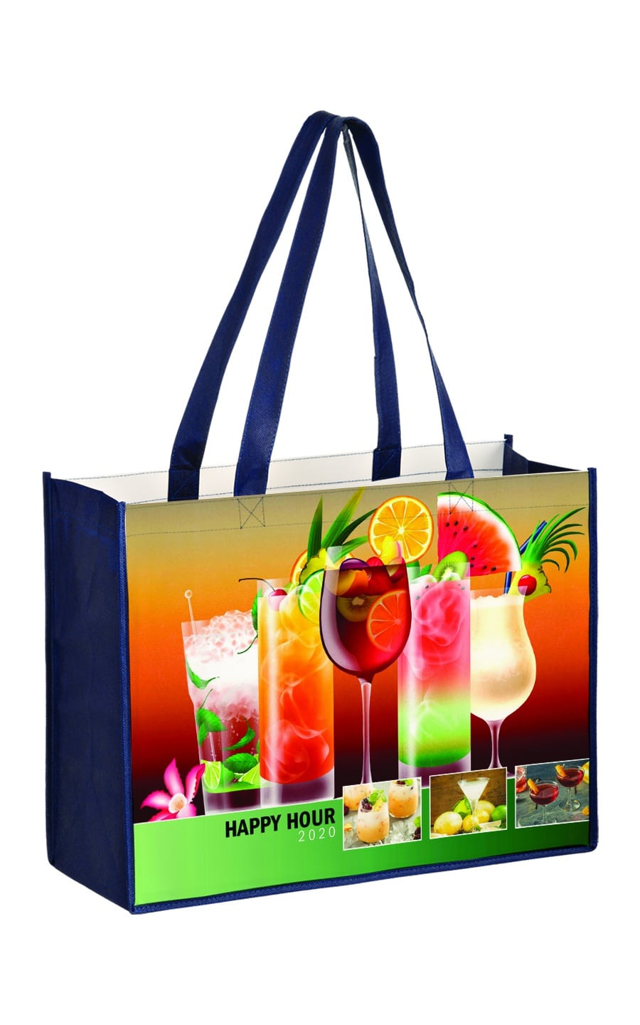 Our Laminated Non Woven Bag features your seam-to-seam full color image on both sides. 24” non-woven handles with your choice of handle and gusset colors (Navy, Royal, Red, Hunter Green, Black or White). Front and back of bag are laminated 130 gsm. Gussets are 100 gsm. Note: Self Promo, Program Pricing or other discounts do not apply.