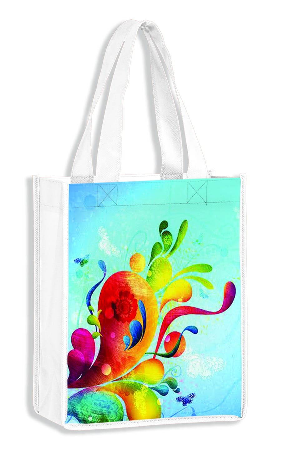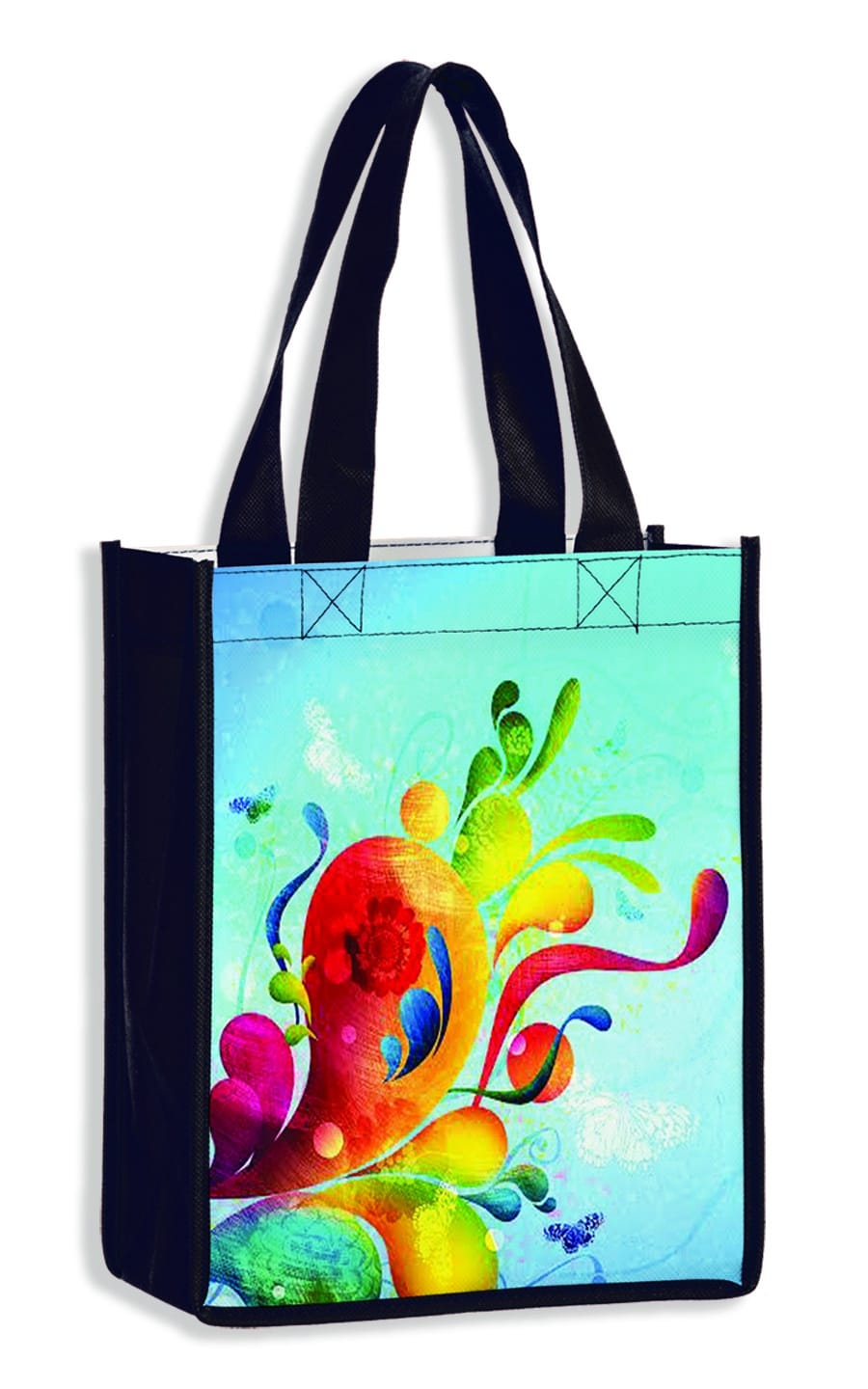 Our Laminated Non Woven Bag features your seam-to-seam full color image on both sides. 14” non-woven handles with your choice of handle and gusset colors (Navy, Royal, Red, Hunter Green, Black or White). Front and back of bag are laminated 130 gsm. Gussets are 100 gsm. Note: Self Promo, Program Pricing or other discounts do not apply.