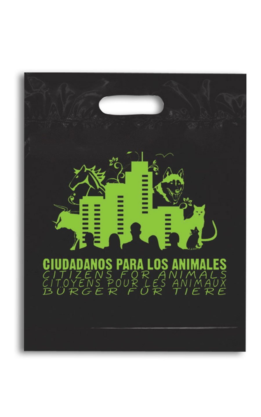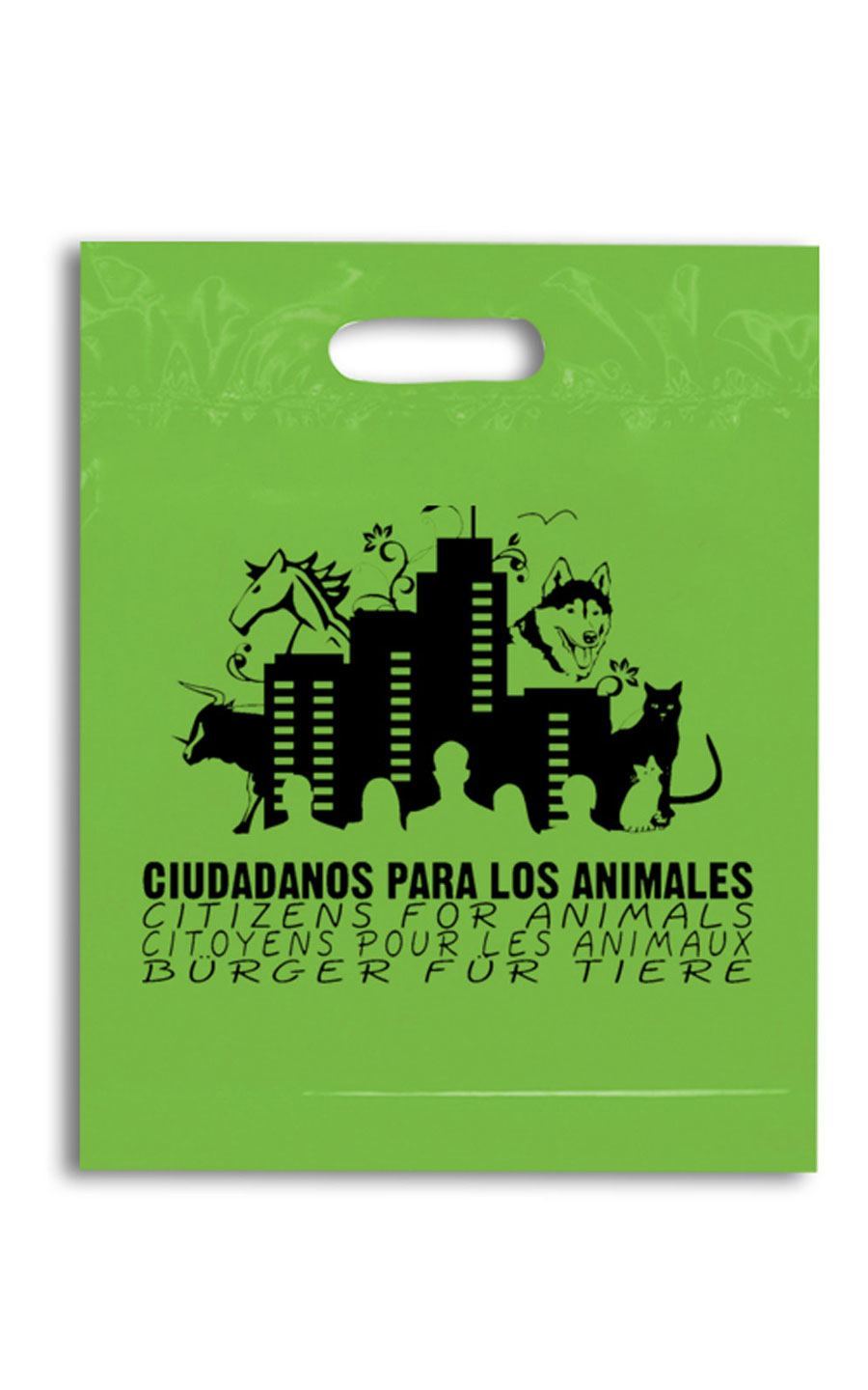 Our Fold Over Die Cut Handle Bag features medium weight soft, low density material with reinforced die cut handles.