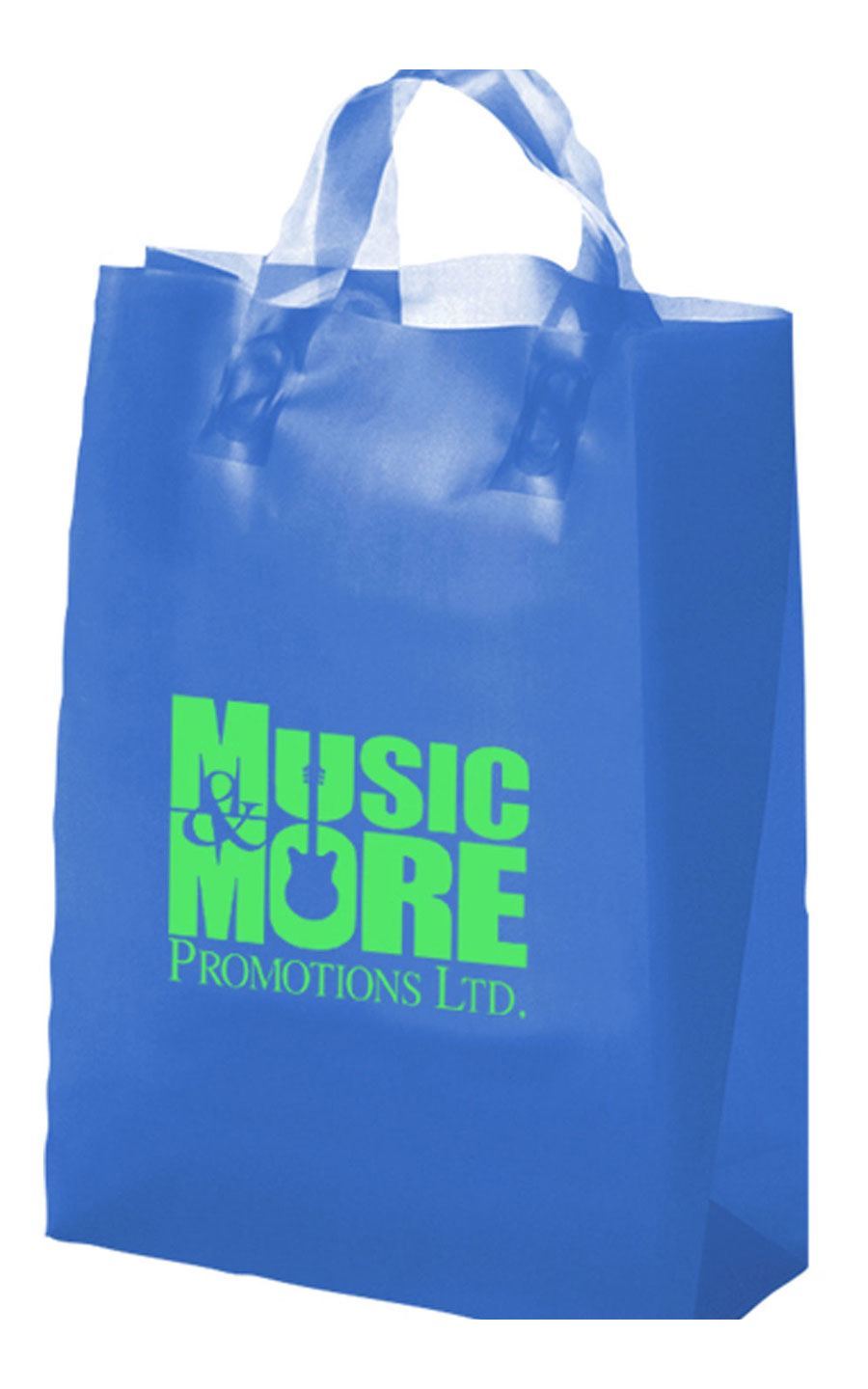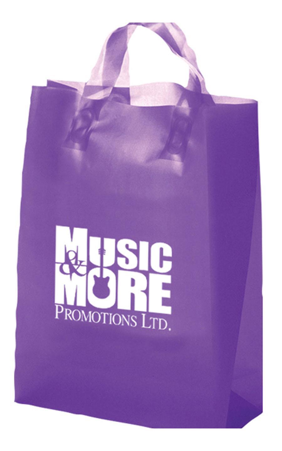 Our Frosted Soft Loop Handle Bag is made of high density heavyweight material with side gussets and cardboard reinforced bottom gusset.